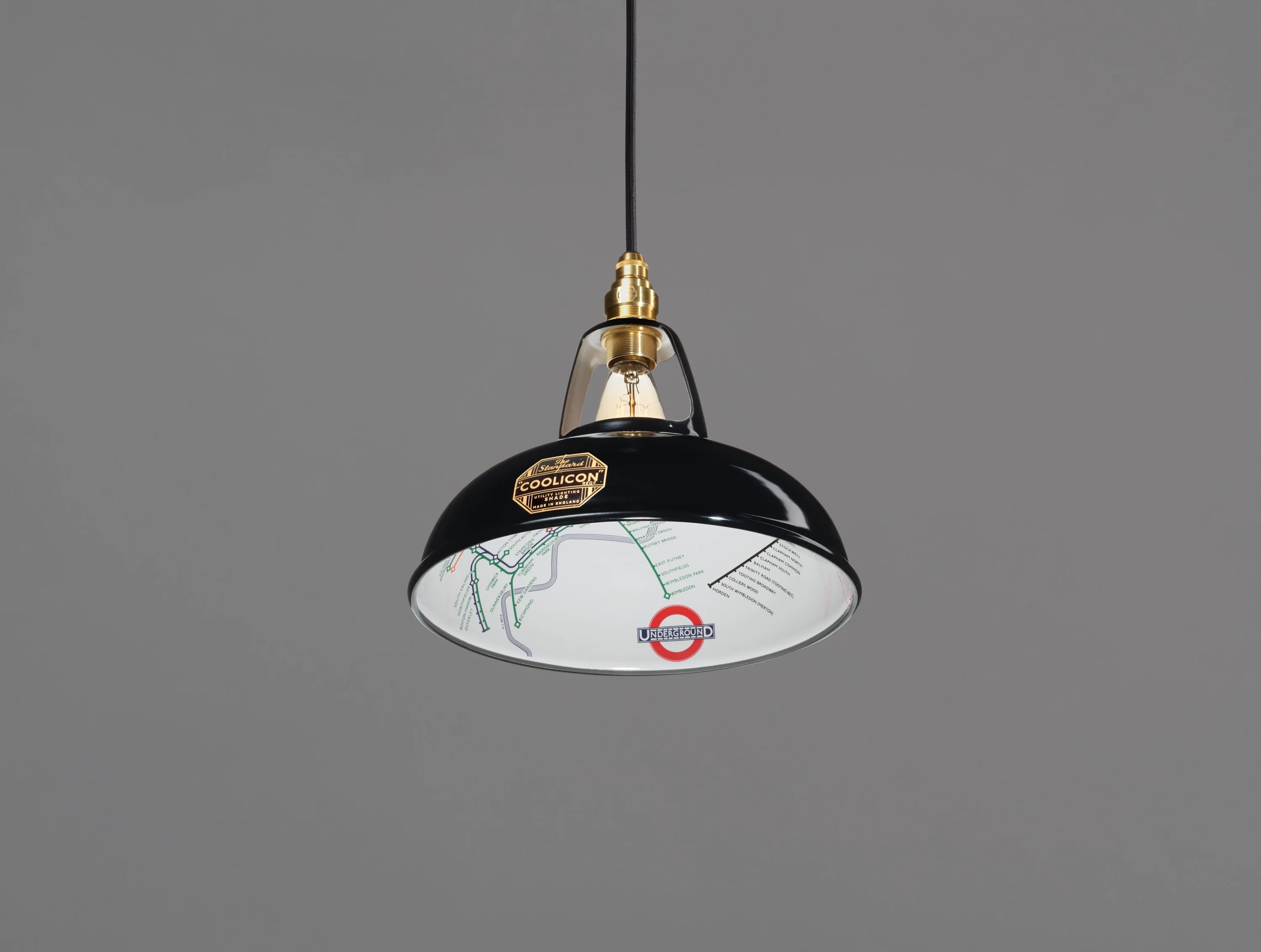 Coolicon Underground pendellampe kombinerer det klassiske Original 1933™ design med en unik grafisk detalje: et London Underground-kort håndemaljeret i smukke, ikoniske farver. Dette design er en del af Coolicon’s Underground Collection, hvor den britiske designarv møder moderne boligbelysning.