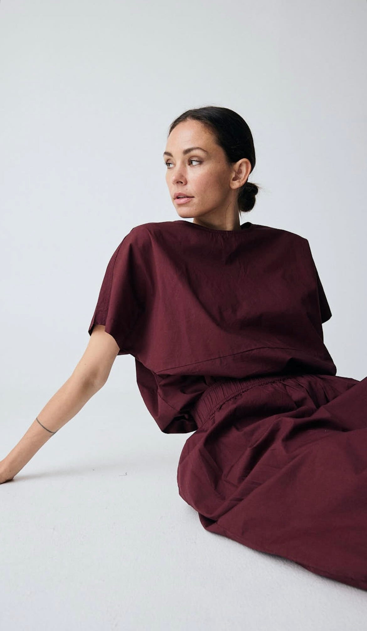 Rome bluse/skjorte har korte ærmer og er clean på fronten med blot en enkelt skæring på tværs.