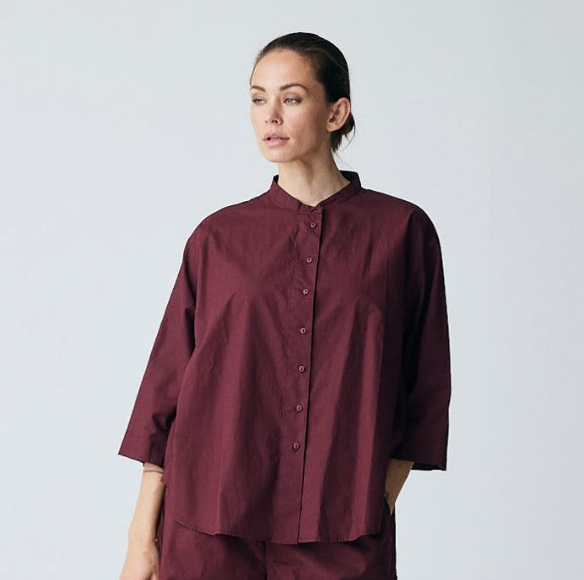 Frau Seoul kort skjorte - den perfekte skjorte til din garderobe, der forener stil og komfort. Seoul skjorten er blevet manges favorit skjorte til at have på på arbejdet, da det er behagelig og pæn skjorte, uden at være figursyet som en klassisk skjorte.Denne skjorte er designet med en elegant kinakrave og 3/4 lange ærmer, der giver et sofistikeret udtryk og mulighed for at man kan se dine smykker. Med dens gennemknappede design og lette bomuldspoplin-stof er den ideel til at have på forår til efterår. Skjorten er lidt længere bagpå end foran for at give den et lettere udtryk foran mens samtidig at "dække" måsen.Style Seoul skjorten med Frau Copenhagen bukser eller Frau Helsinki Nederdel i samme farve og kvalitet for et moderne look. Seoul Skjorten findes også i en lang udgave og i en kjole.