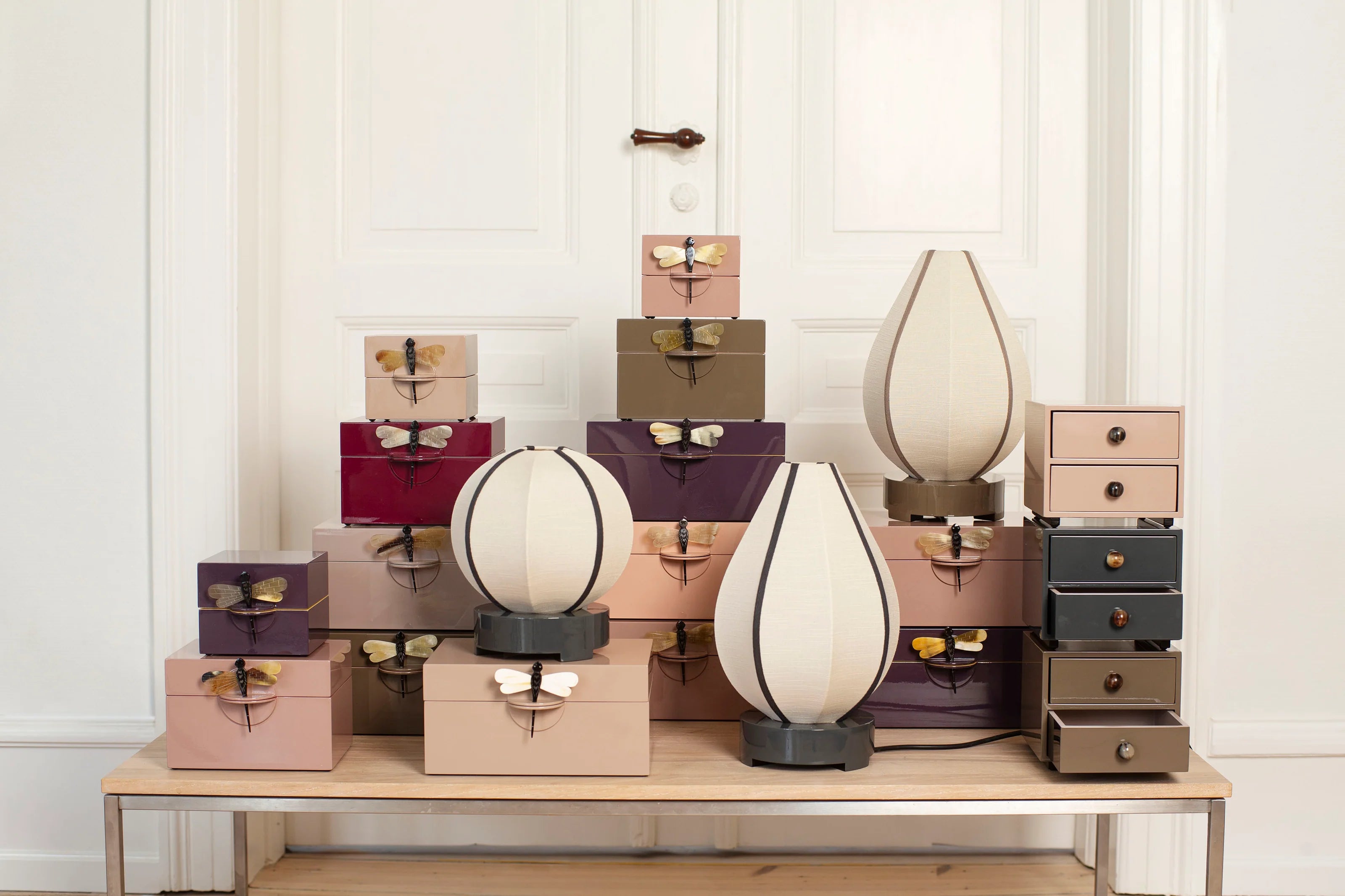 Super smukt smykkeskrin fra det Oi Soi Oi, der kombinerer elegance og funktionalitet. Hvert skrin er håndlavet og lakeret 13-15 gange for at opnå den høje kvalitet. De elegante smykkeskrin er den perfekte opbevaring til dine mest værdsatte smykker eller minder. Skrinene lukkes med en elegant og unik guldsmed lavet af bøffelhorn, der tilføjer et eksklusivt og luksuriøst præg. Den dyrebare lakæske er ikke kun praktisk, men også så stilfulde og smuk at den fortjener at stå fremme. Smykkeskrinet er ideelle til at beskytte dine smykker, billeder, minder, babys håndaftryk og samtidig give et sofistikeret touch til dit hjem. "Dragonfly" smykkeskrinnet for et luksuriøs skrin, der både er smuk og holdbar - den perfekte gave til en du holder af.