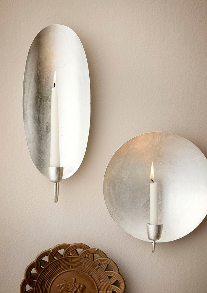 Den ovale væghængte lysestage fra Bungalow er et elegant og tidløst stykke interiør, der tilfører en smuk glød til dine vægge. Udført i metal med håndmalet bladguld, skaber denne lysestage en fortryllende atmosfære, når lyset fra et kronelys reflekteres i den gyldne overflade.