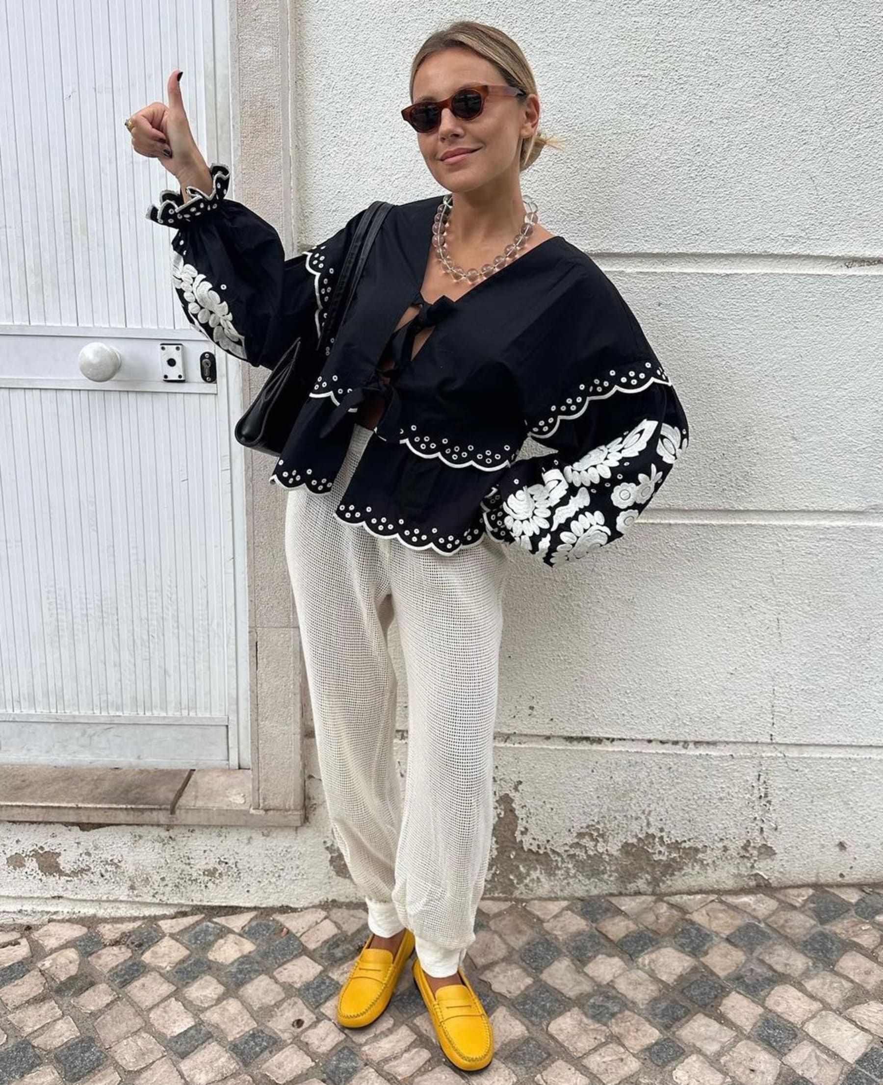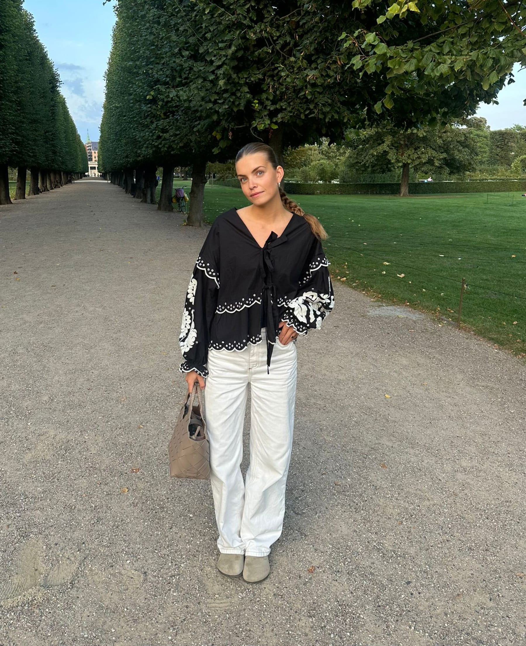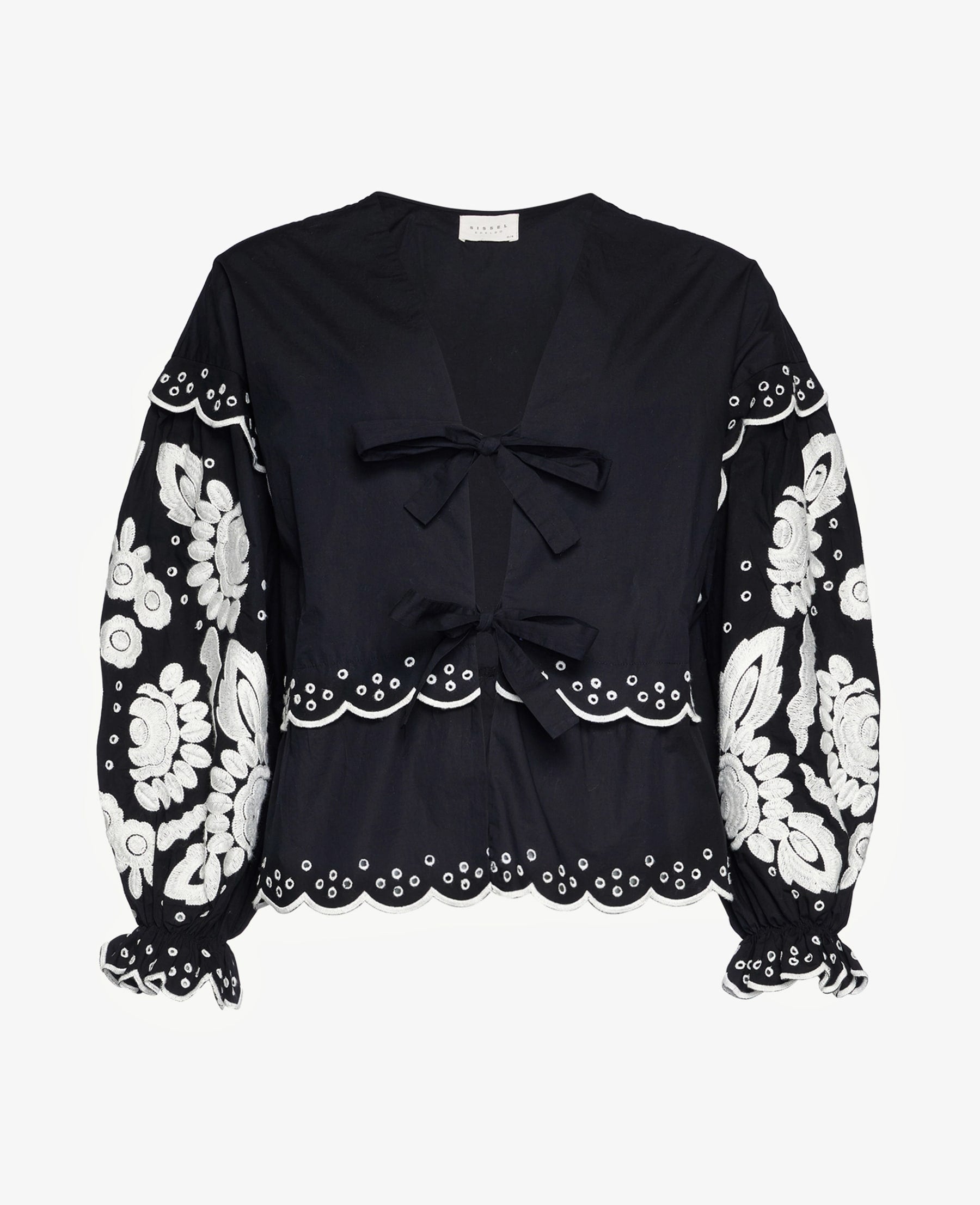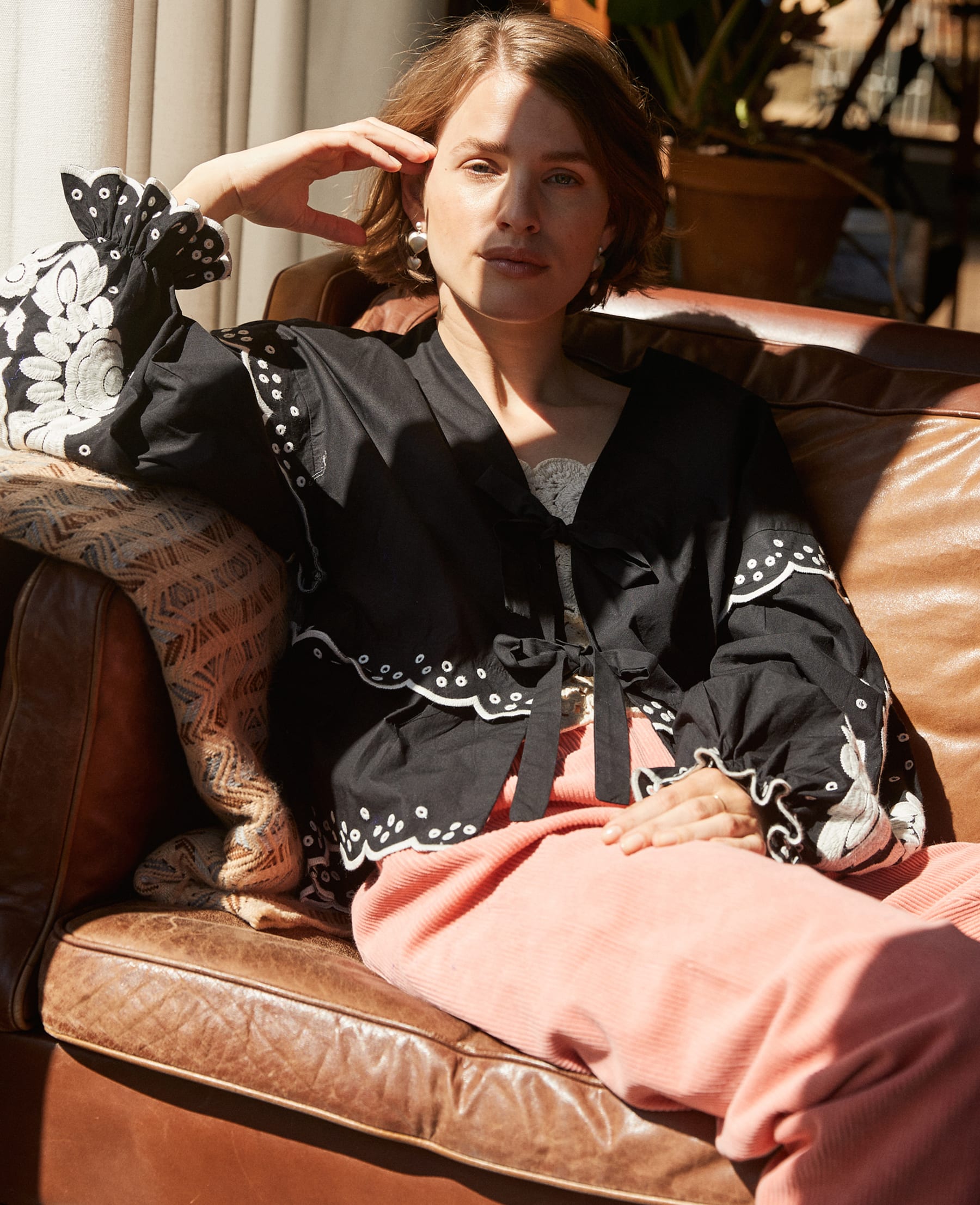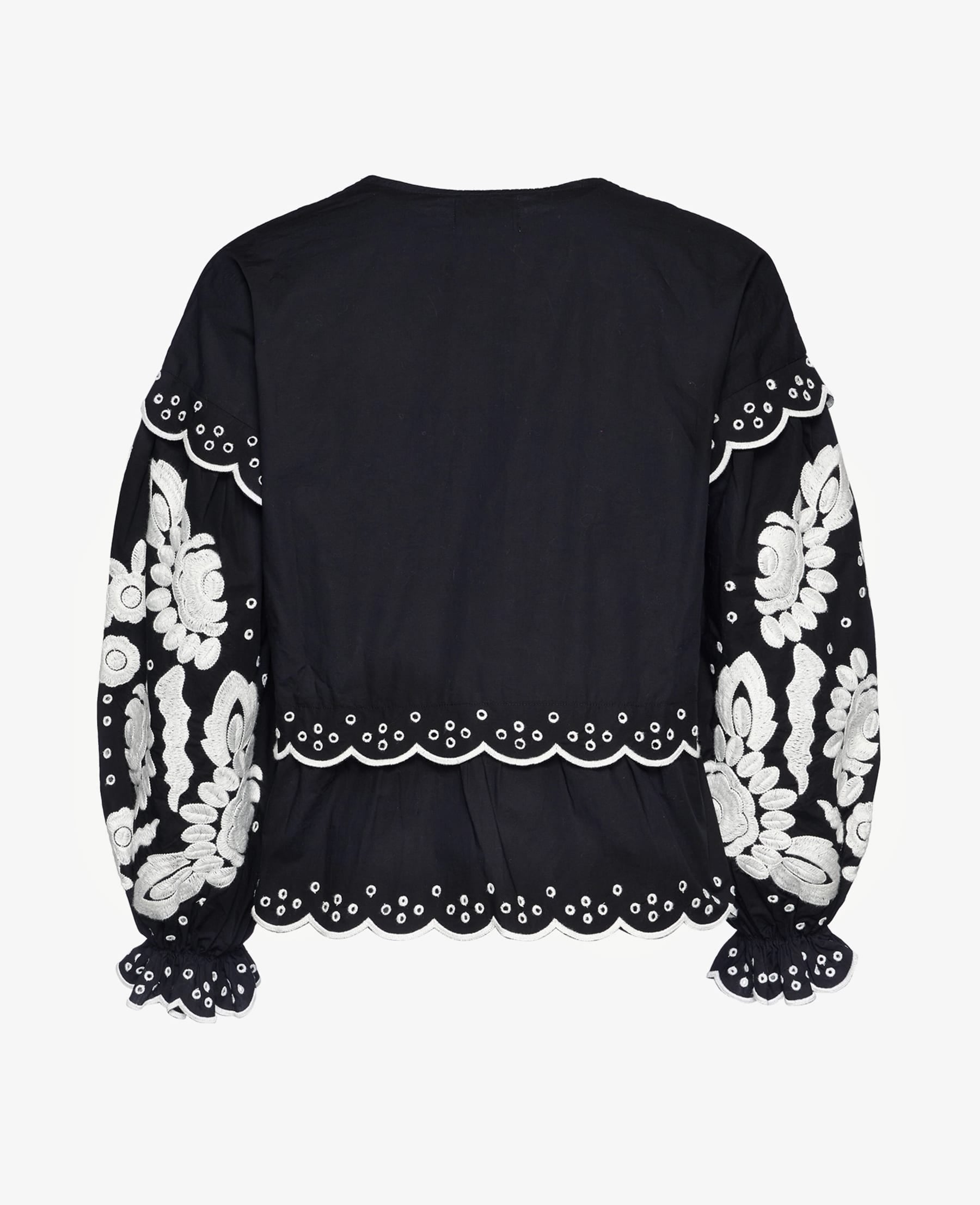 Martha Top er rigt dekoreret med voluminøst broderi i kontrastfarve, som smukt pryder ydersiden af ærmerne samt de dekorative, broderede scallop-kanter. De fine detaljer understreger Sissel Edelbos sans for håndværk og kunstnerisk design.