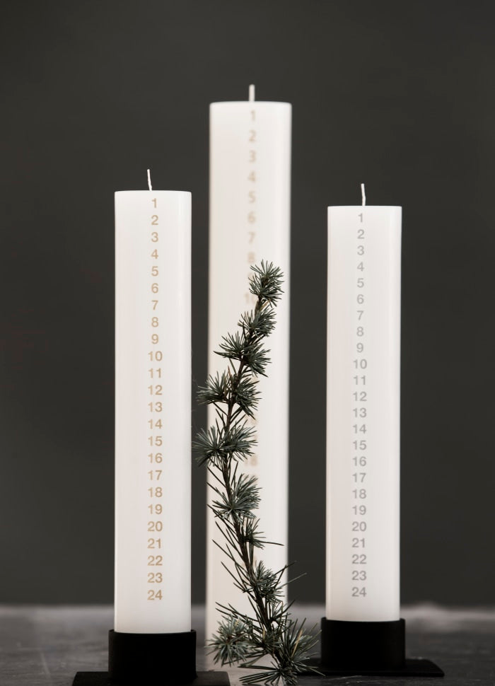 Kunstindustrien Kalenderlys - Ø5 x H30 Sorte Tal Kunstindustrien Kalenderlys - Ø6 x H30cm Aquamarine med Røde Tal Kunstindustrien Kalenderlys - Ø5 x H30 Guld Tal Kunstindustrien Kalenderlys - Ø6 x H28 Chestnut Kunstindustrien Kalenderlys - Advent 7x24 cm