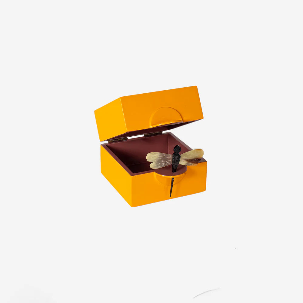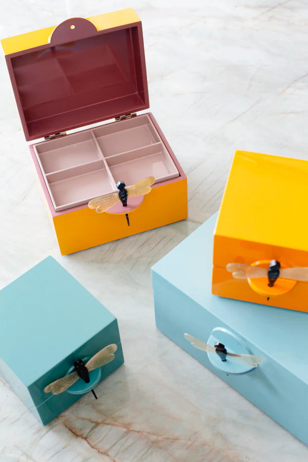 • Super smukt smykkeskrin fra det Oi Soi Oi, der kombinerer elegance og funktionalitet. Hvert skrin er håndlavet og lakeret 13-15 gange for at opnå den høje kvalitet. De elegante smykkeskrin er den perfekte opbevaring til dine mest værdsatte smykker eller minder. Skrinene lukkes med en elegant og unik guldsmed lavet af bøffelhorn, der tilføjer et eksklusivt og luksuriøst præg. Den dyrebare lakæske er ikke kun praktisk, men også så stilfulde og smuk at den fortjener at stå fremme. Smykkeskrinet er ideelle til at beskytte dine smykker, billeder, minder, babys håndaftryk og samtidig give et sofistikeret touch til dit hjem. "Dragonfly" smykkeskrinnet for et luksuriøs skrin, der både er smuk og holdbar - den perfekte gave til en du holder af.