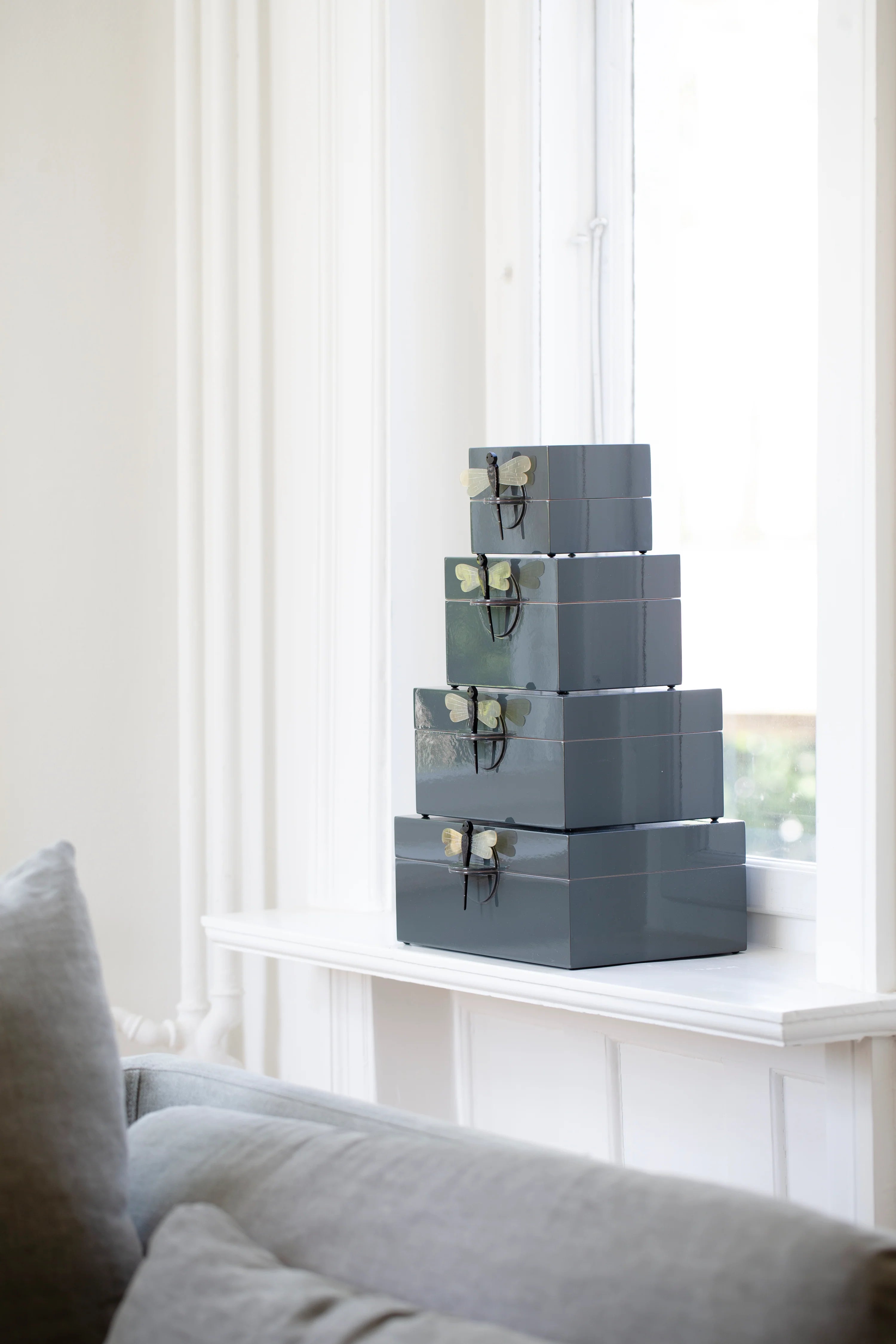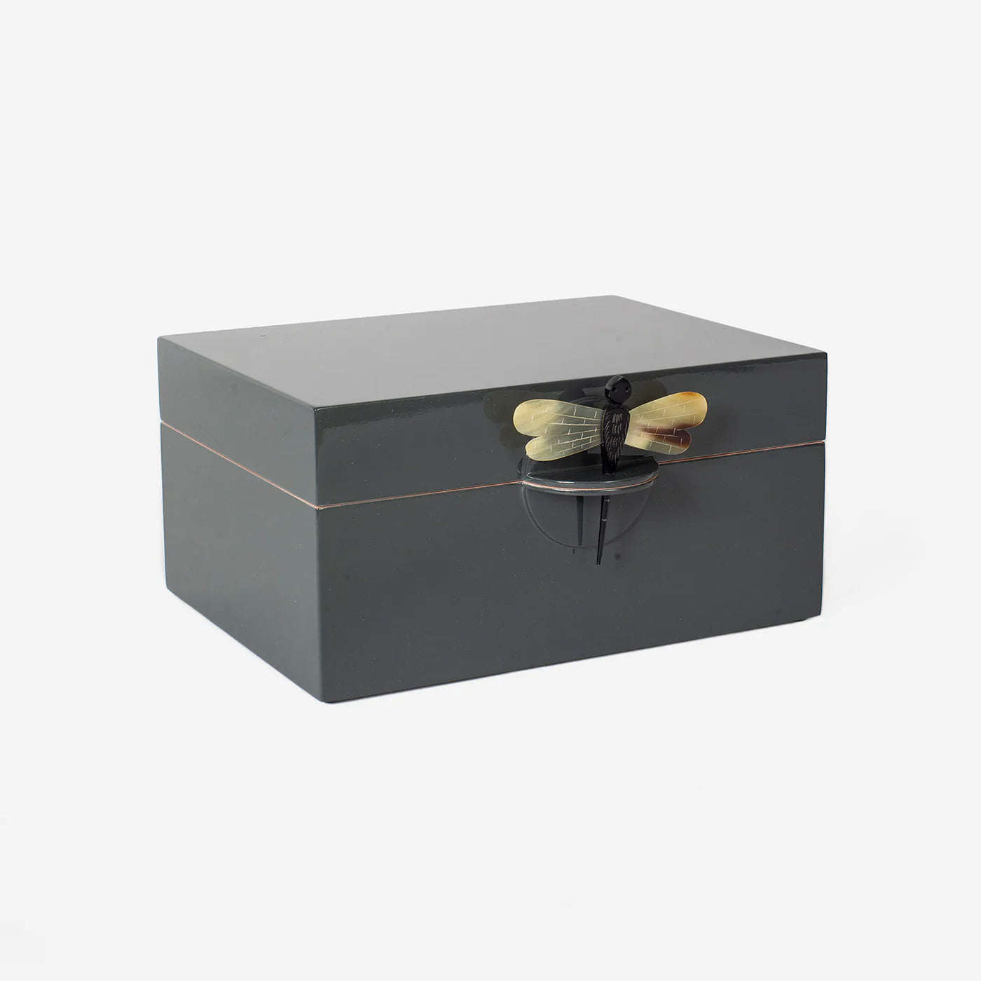 Super smukt smykkeskrin fra det Oi Soi Oi, der kombinerer elegance og funktionalitet. Hvert skrin er håndlavet og lakeret 13-15 gange for at opnå den høje kvalitet. De elegante smykkeskrin er den perfekte opbevaring til dine mest værdsatte smykker eller minder. Skrinene lukkes med en elegant og unik guldsmed lavet af bøffelhorn, der tilføjer et eksklusivt og luksuriøst præg. Den dyrebare lakæske er ikke kun praktisk, men også så stilfulde og smuk at den fortjener at stå fremme. Smykkeskrinet er ideelle til at beskytte dine smykker, billeder, minder, babys håndaftryk og samtidig give et sofistikeret touch til dit hjem. "Dragonfly" smykkeskrinnet for et luksuriøs skrin, der både er smuk og holdbar - den perfekte gave til en du holder af.