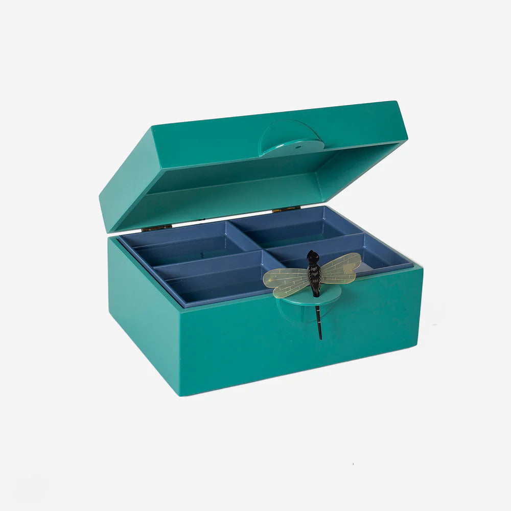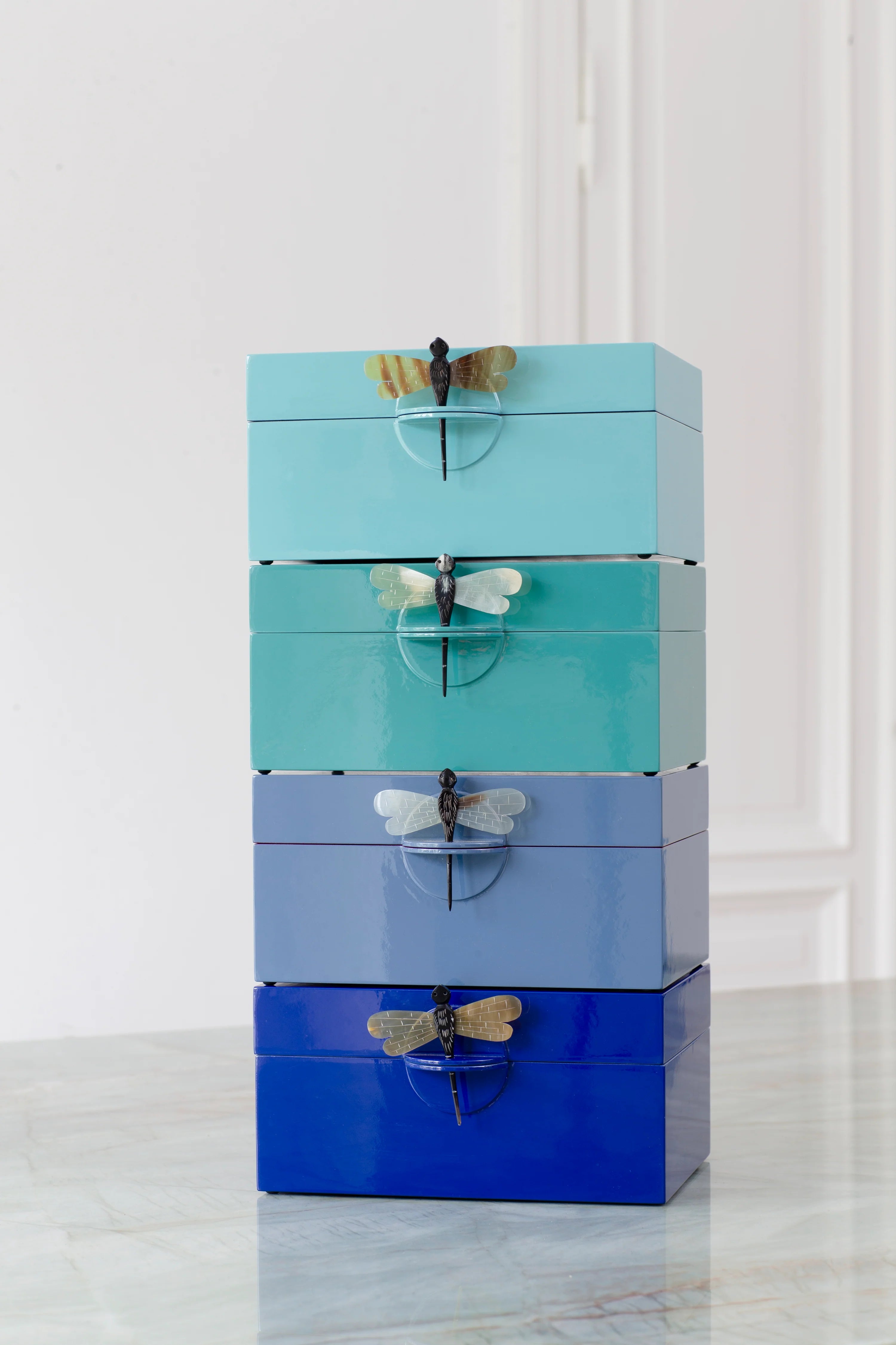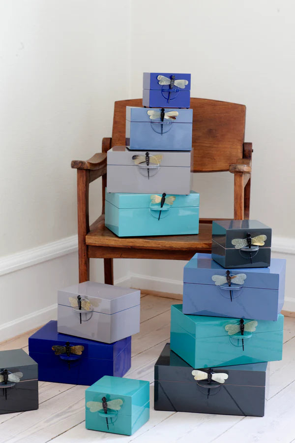 Super smukt smykkeskrin fra det Oi Soi Oi, der kombinerer elegance og funktionalitet. Hvert skrin er håndlavet og lakeret 13-15 gange for at opnå den høje kvalitet. De elegante smykkeskrin er den perfekte opbevaring til dine mest værdsatte smykker eller minder. Skrinene lukkes med en elegant og unik guldsmed lavet af bøffelhorn, der tilføjer et eksklusivt og luksuriøst præg. Den dyrebare lakæske er ikke kun praktisk, men også så stilfulde og smuk at den fortjener at stå fremme. Smykkeskrinet er ideelle til at beskytte dine smykker, billeder, minder, babys håndaftryk og samtidig give et sofistikeret touch til dit hjem. "Dragonfly" smykkeskrinnet for et luksuriøs skrin, der både er smuk og holdbar - den perfekte gave til en du holder af.