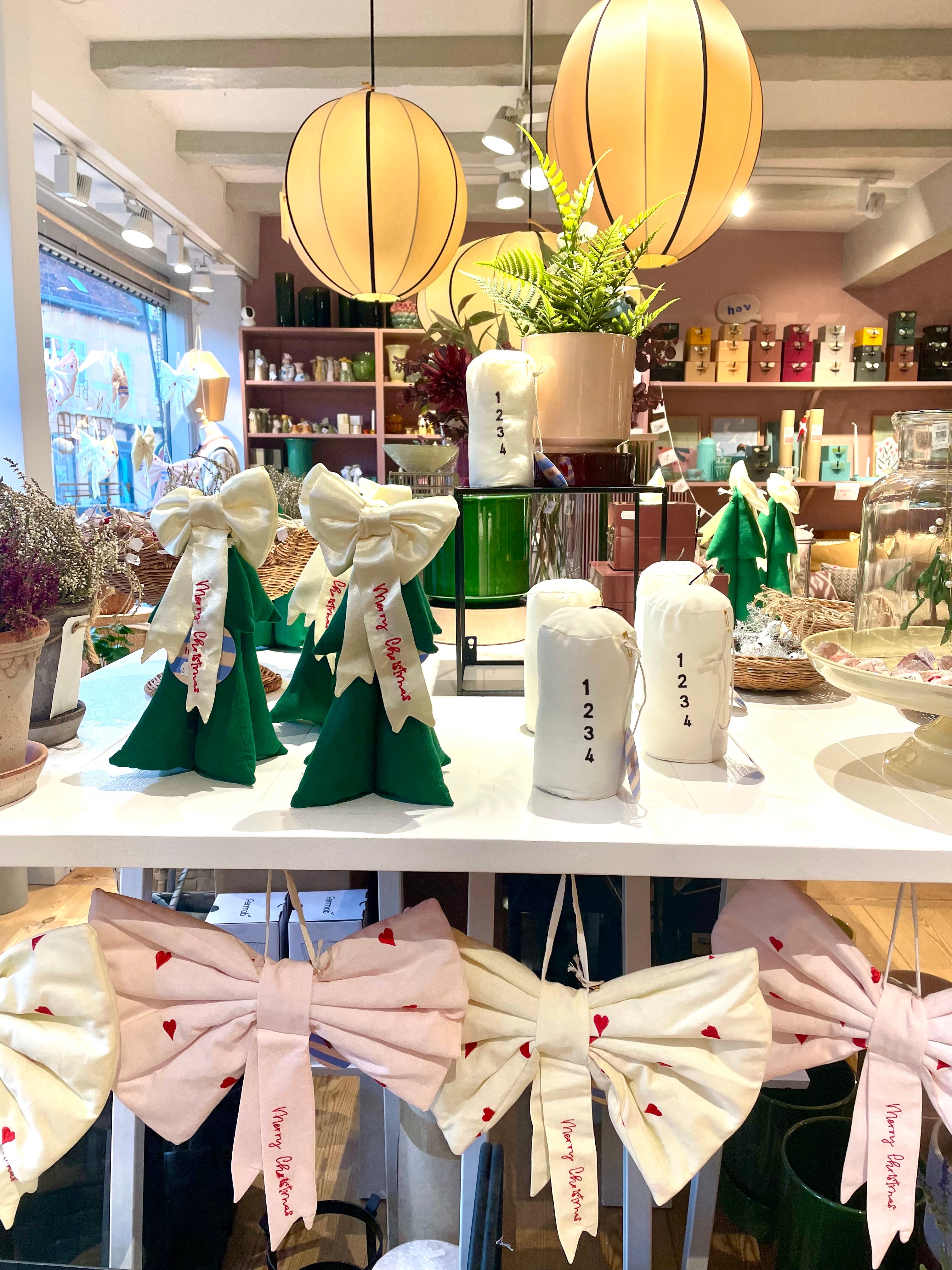 Polstret julesløjfe med Merry Christmas-broderi – hyggelig julepynt