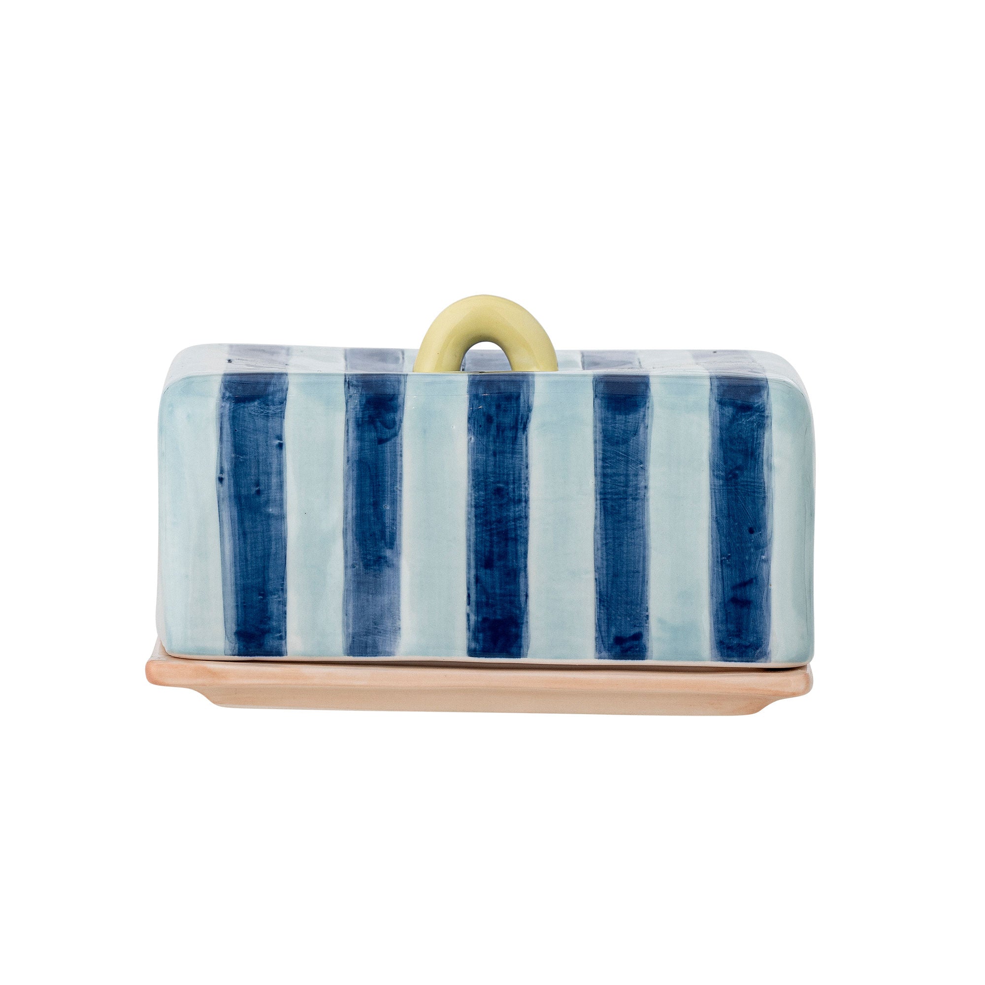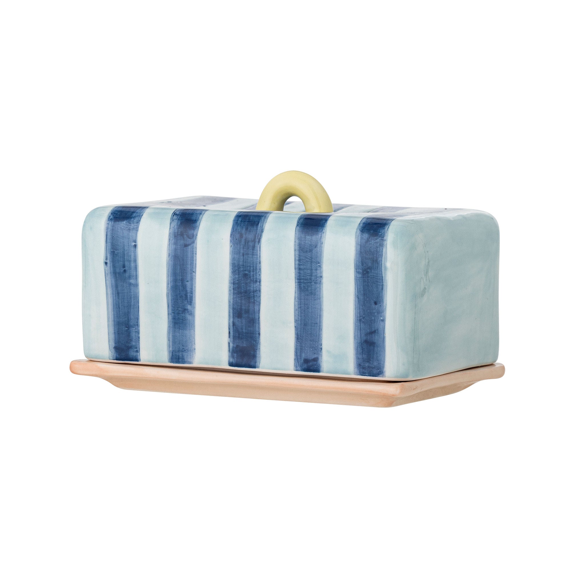 Phoenix Smørboksen fra Bloomingville er en smørboks i stentøj med håndmalet overflade og blank glasur. Den har et stribet design i fine kontraster og en løkkeformet hank. Små variationer i mønster og farvedybde kan forekomme, så hver smørboks er unik.