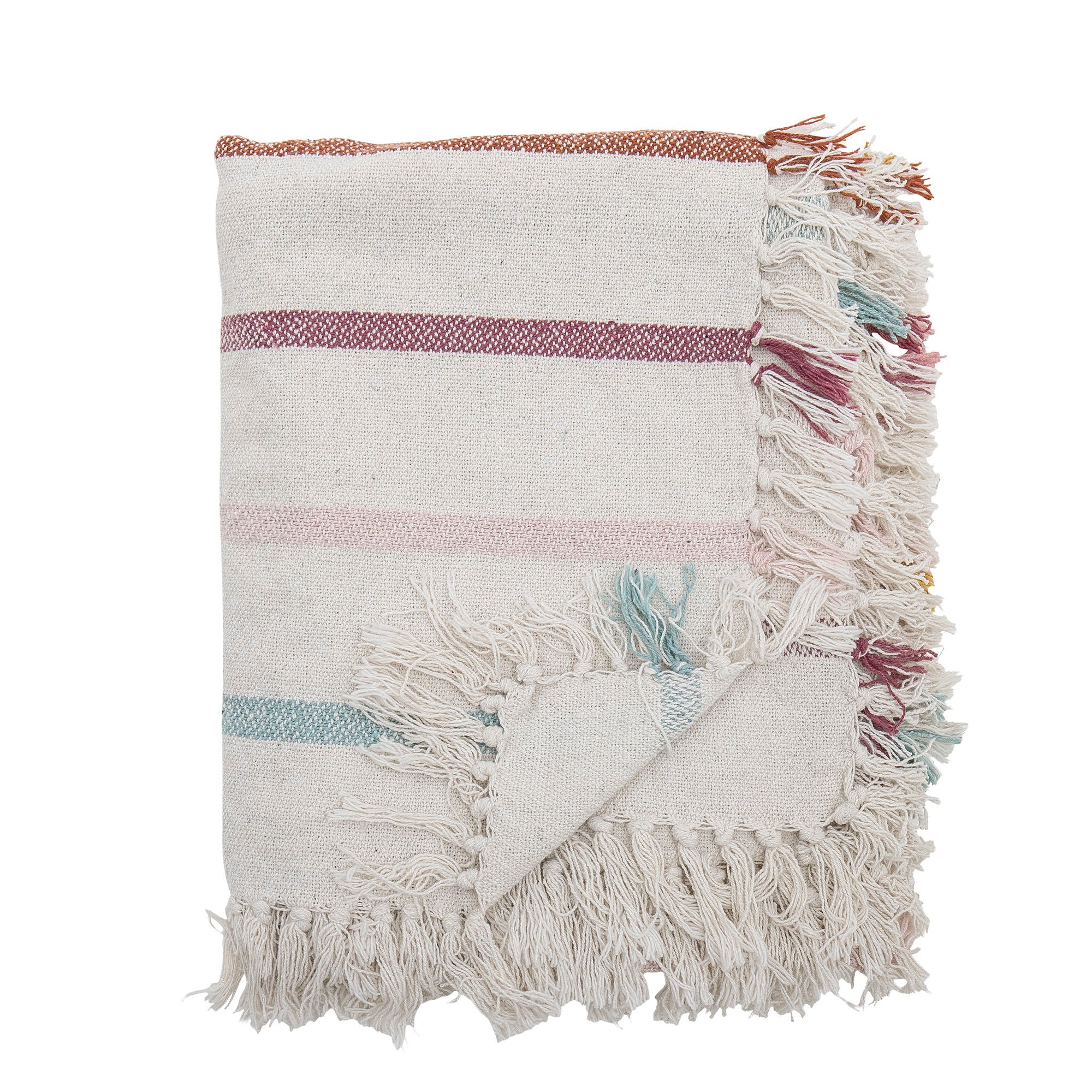 Frey Plaiden fra Bloomingville MINI er lavet af genanvendt bomuld i en lys nuance, med striber i flotte farver. Med sine fine frynser langs kanterne er plaiden dekorativ og giver et hyggeligt og varmt udtryk hvor end den placeres.