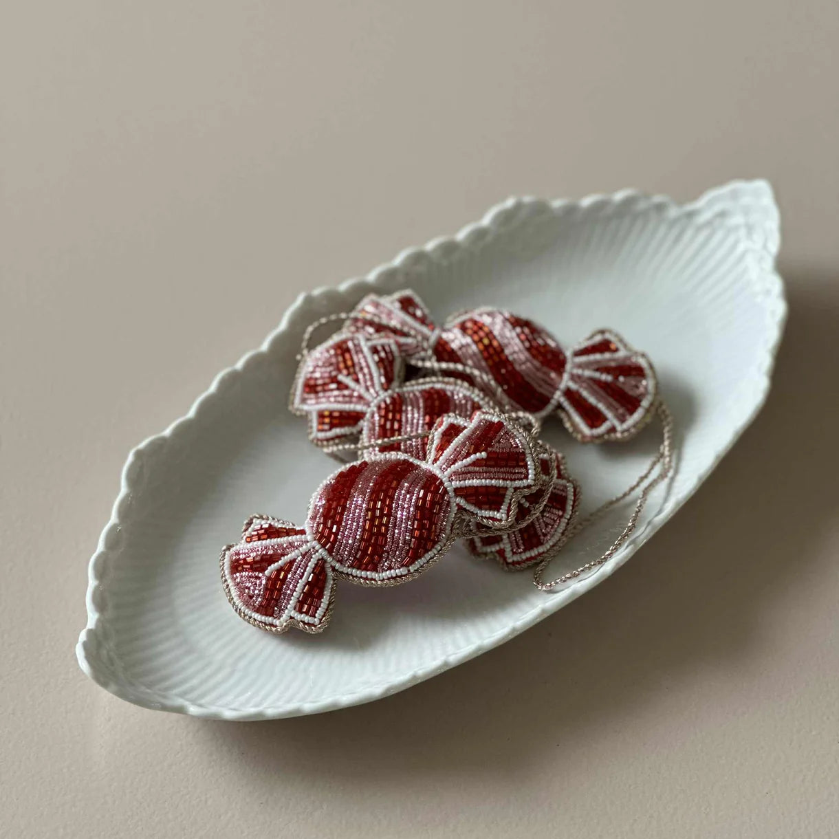 Karamellerne er så lækker at selv de indiske syerske blev helt lækkersulten. Karamellerne er nøje håndsyet af nogle af Indiens mest talentfulde håndværkere. Med stor præcision og kærlighed har de skabt unikke stykker, der vil pryde dit juletræ eller vindue og bringe dansk tradition ind i dit hjem på en elegant måde.