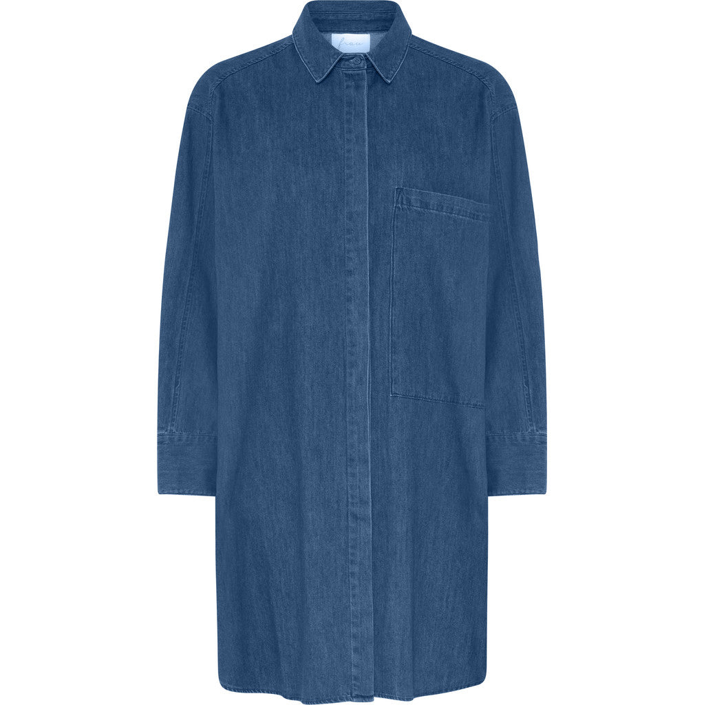 Frau Lyon skjorte er en cool lang skjorte i denim. Denne skjorte er et twist på moden med at iklæde sig en klassisk herreskjorte, men Lyon skjorten er tilpasset en kvinde, så den stadig er feminin og stilfuld. Med dens lange ærmer, stor forlomme og klassiske krave udstråler den en tidløs elegance, der aldrig går af mode. Udover denim kommer Lyon Skjorten i et hav af farver, samt forskellige materialer som uld.