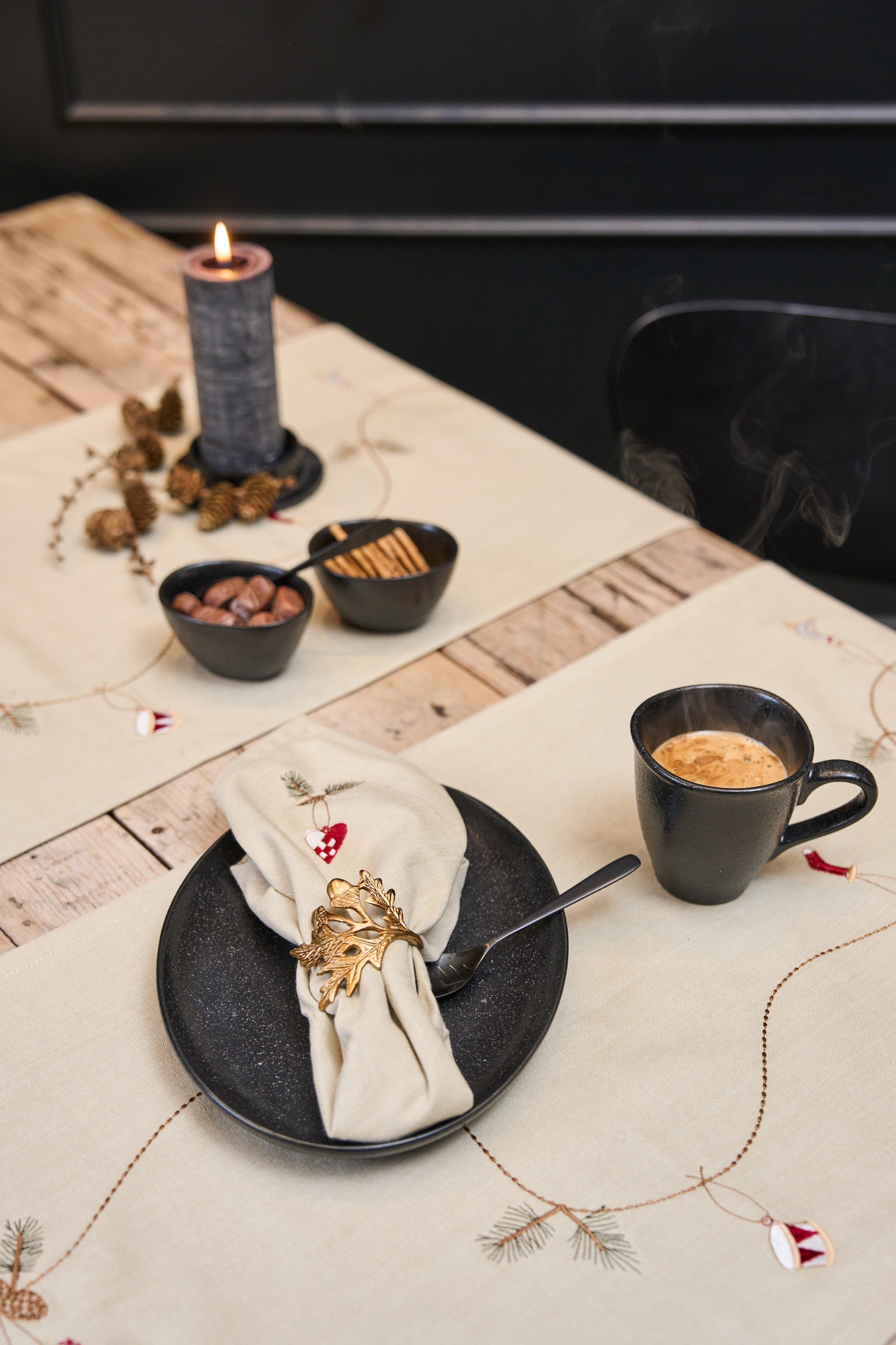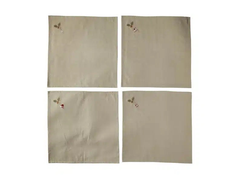 Jule Stofservietter med broderi Neutral 4stk