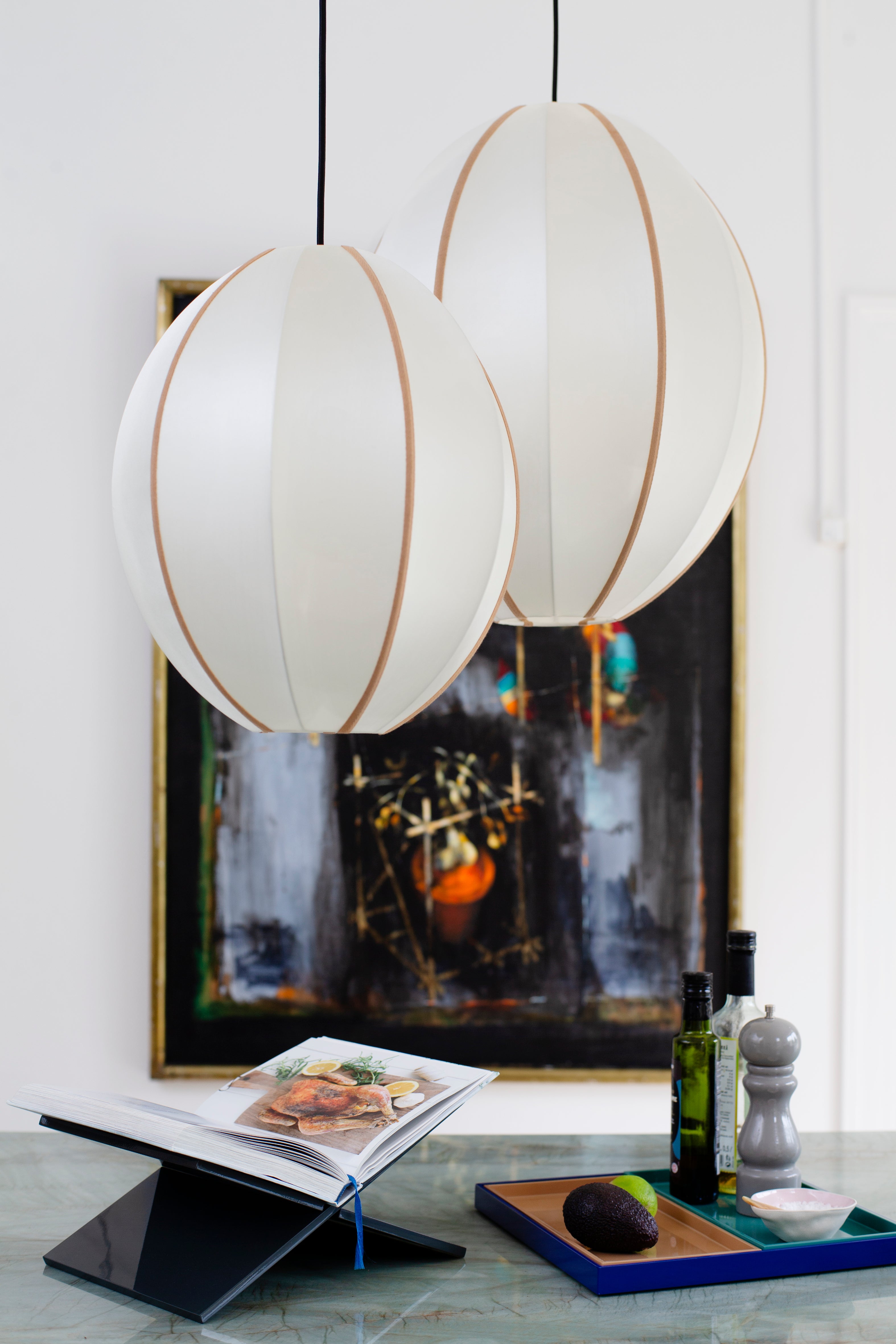 • Skab en stemningsfuld belysning med de smukke lampeskærme fra Oi Soi Oi. Den ovale loftslampeskærm er håndlavet i 100% silke og afsluttet med fine bomuldsbånd, der understreger det elegante og enkle design.