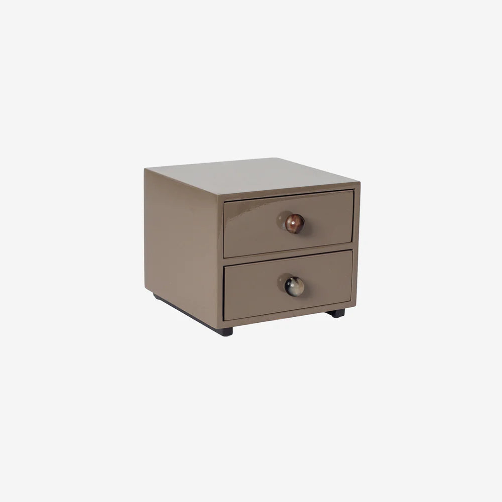 Denne søde lille, lakerede kommode er både praktisk og dekorativ – perfekt til opbevaring af smykker, små accessories eller andre fine småting. Med sine 2 skuffer giver den god mulighed for at organisere ringe, armbånd, øreringe osv, så det hele er samlet ét sted og let at finde. Brug den til de vigtigste minder.