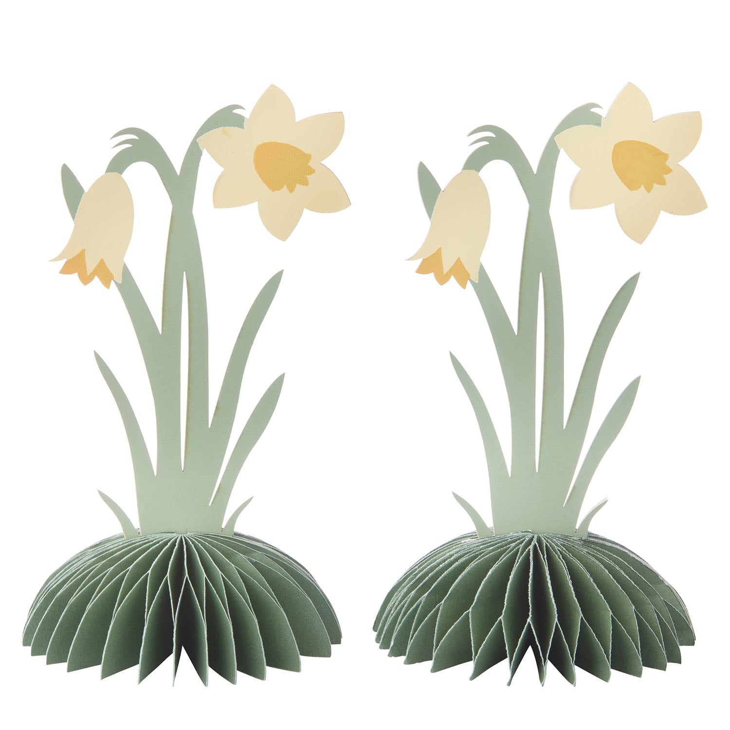 Sæt af 2 stående papirfigurer med påskeliljer motiv og honeycomb fod.