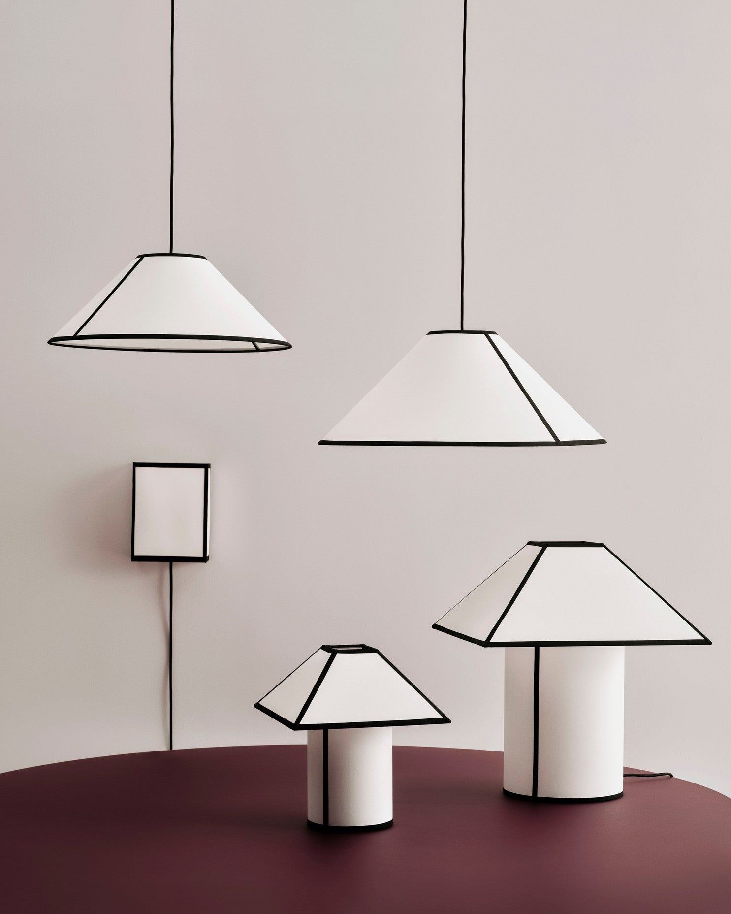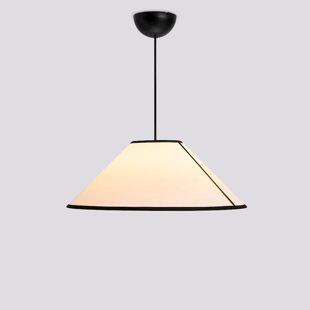 Ava Cone Pendant er designet for HAY af Ana Kraš og forener den klassiske kegleformede pendel med et grafisk, moderne udtryk. Skærmen er fremstillet i ECOPET™, et materiale baseret på genanvendt PET-plast, der giver en let transparent, papiragtig kvalitet, smukt afstemt med kontrasterende stofkanter.