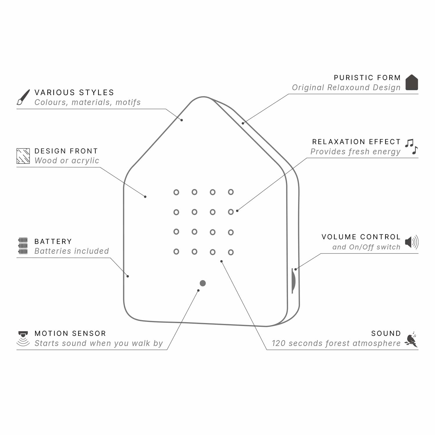 Boksen aktiveres af en bevægelsessensor, der reagerer på ændringer i lyset, og den kan placeres hvor som helst eller hænges på en væg.