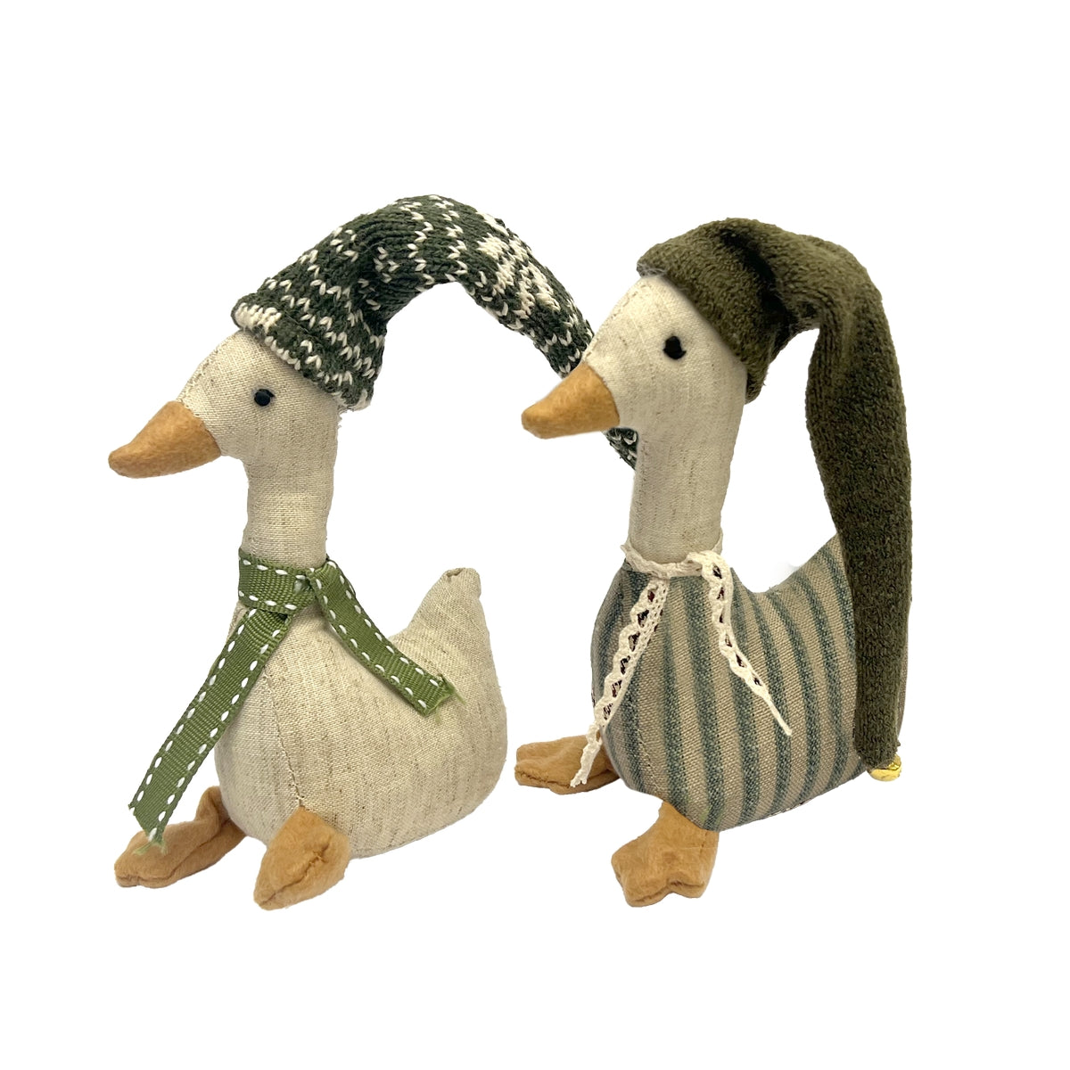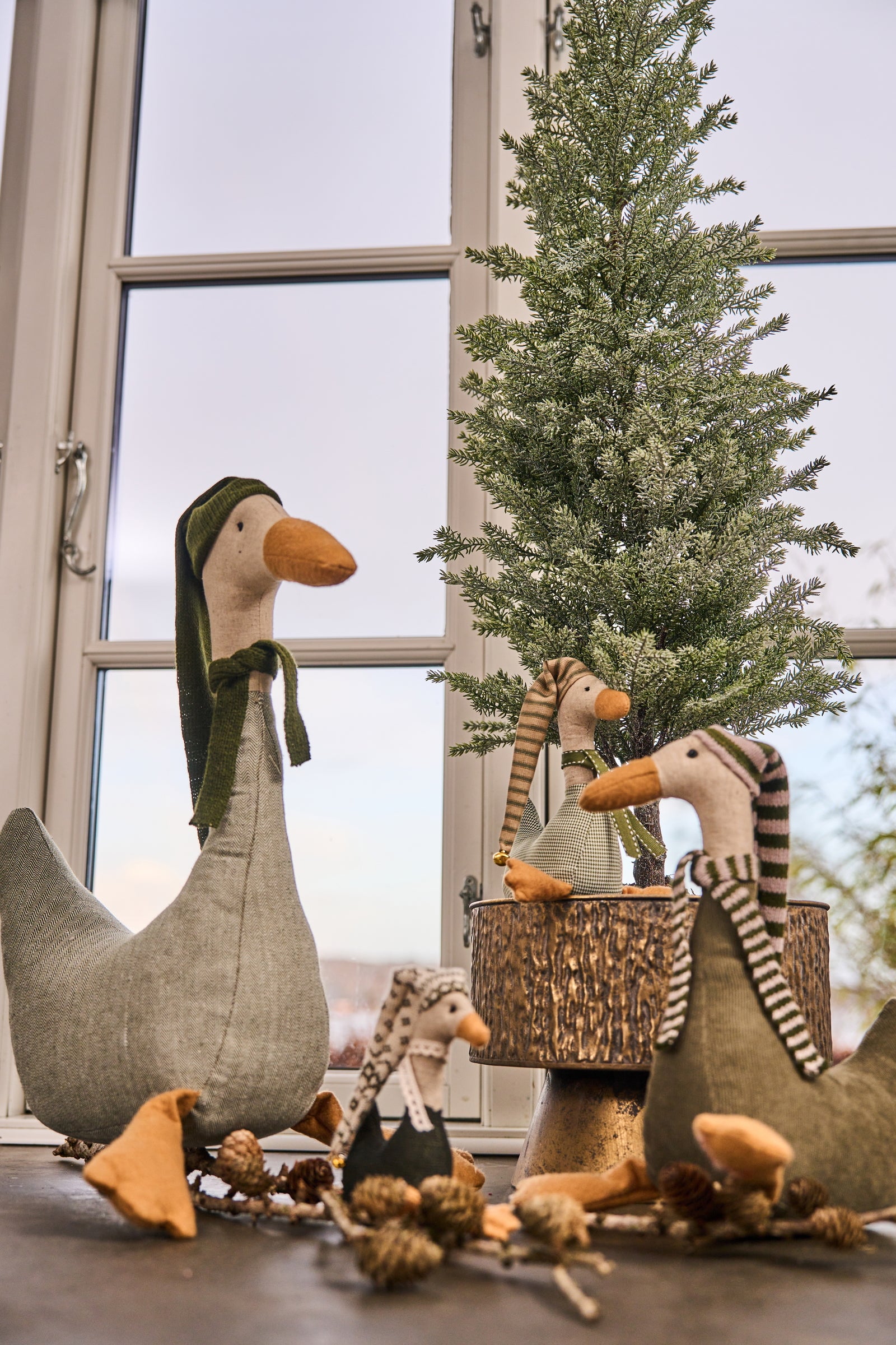 De skønneste små gæs med lang nissehue og halstørklæde i de fineste julestoffer