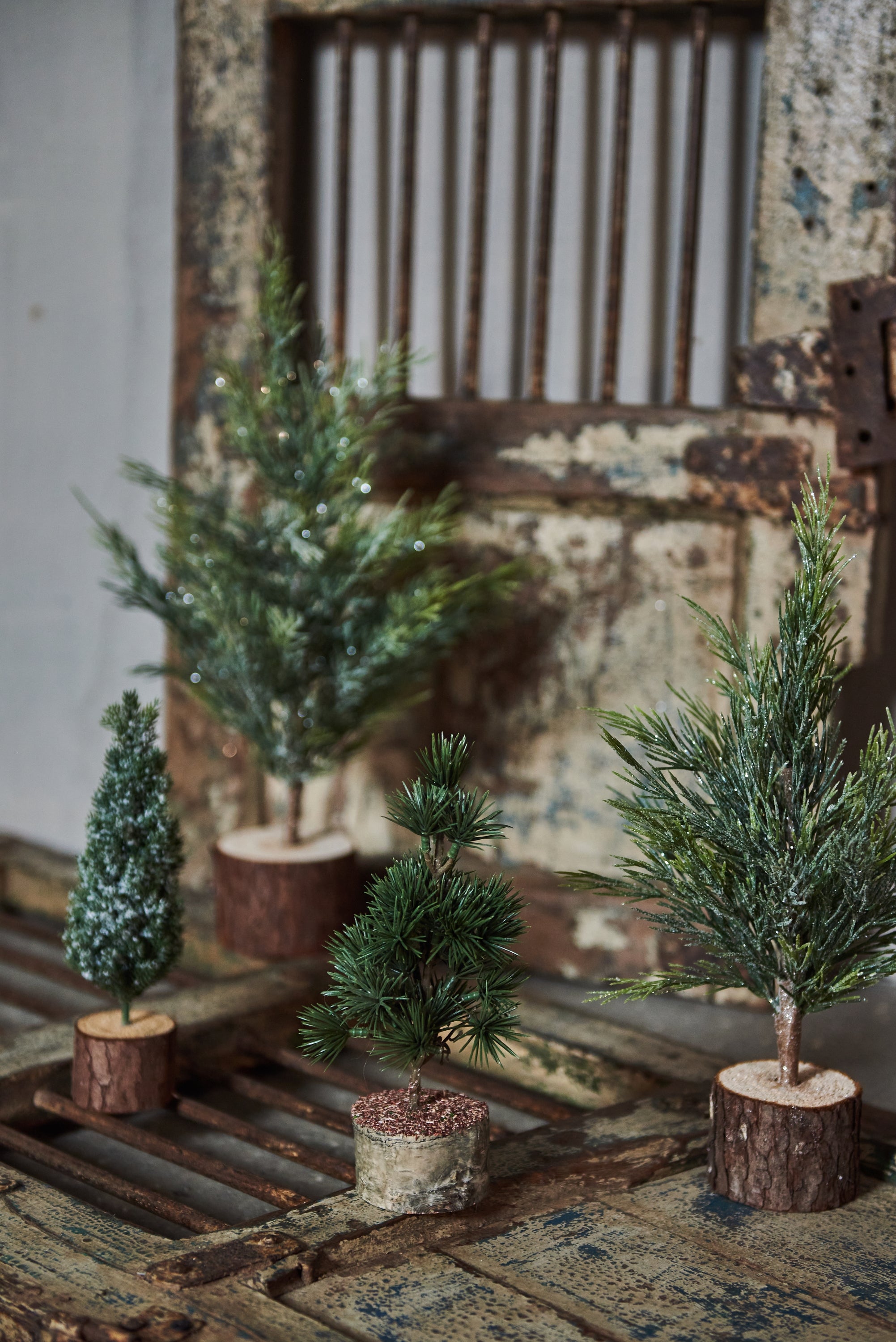 Kunstig cedertræ til at pynte til jul. Dekorer den med julepynt og lyskæde.