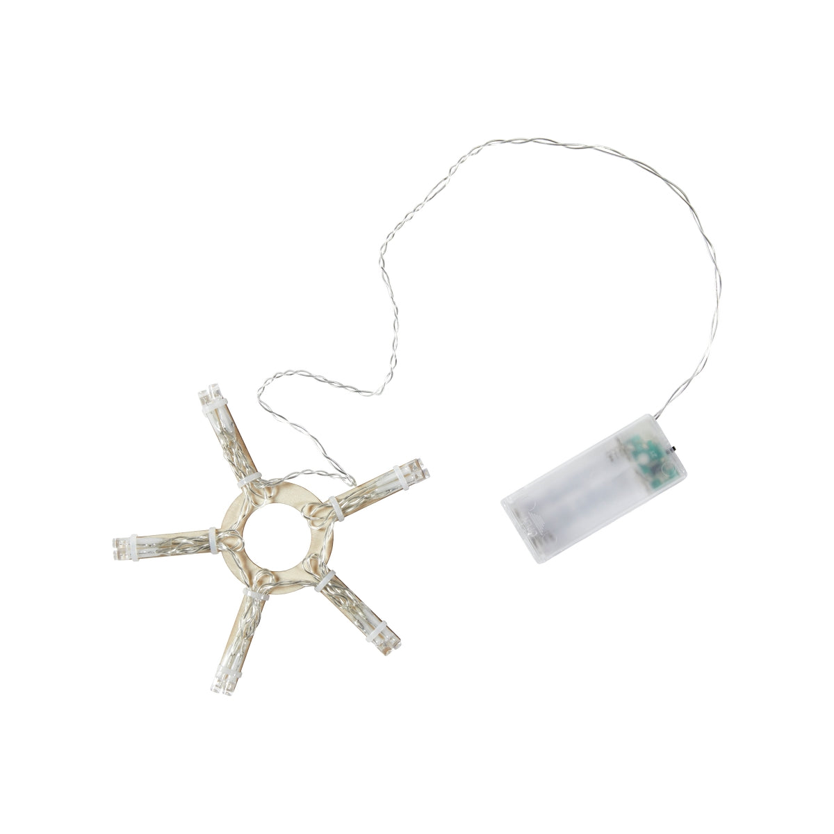 Lyskæde til Julestjerne med 5 arme. Put indeni din papirstjerner og skab en hyggelig julestemning. Har timer funktion 6 timer tændt/18 timer slukket. Bruger 2AA batterier. Sælges uden batterier.